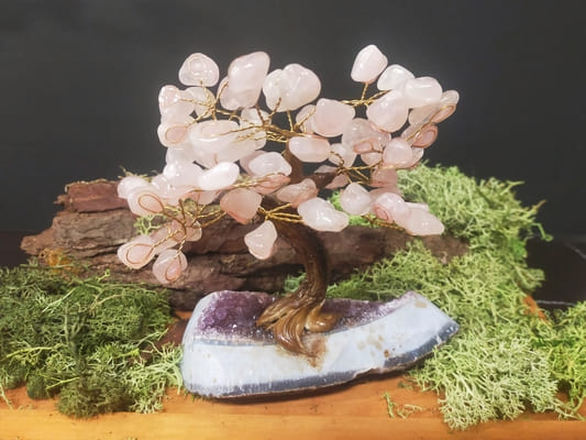 Árbol Mineral Mediano con base amatista y Cuarzo Rosa