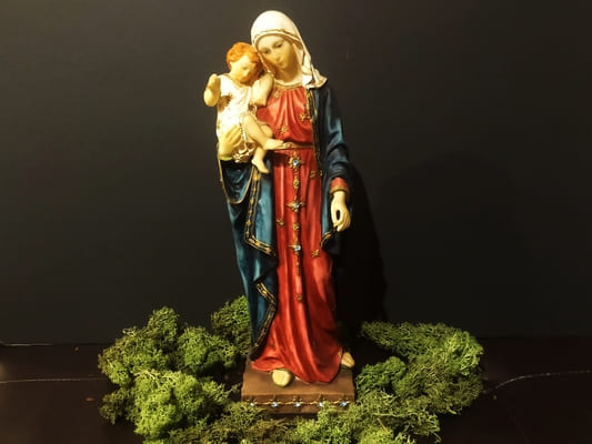Figura Virgen con bebé. Fabricada con materias primas de alta calidad y pintada a mano