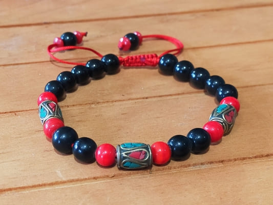 Pulsera mala de onix con pieza en metal e incrustaciones