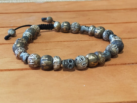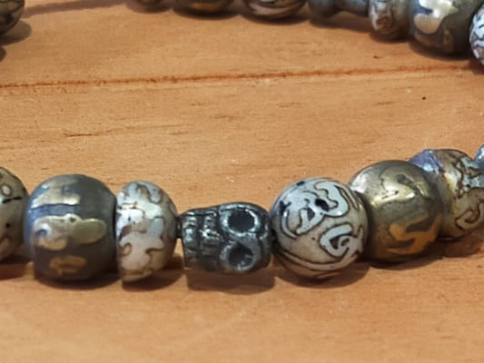 Pulsera mala Diosa Kali de metal con mantras y calaveras