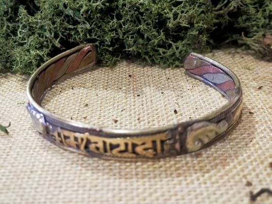 Pulsera Tibetana con mantra Om Mani Padme Hum. Fabricada artesanalmente.