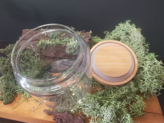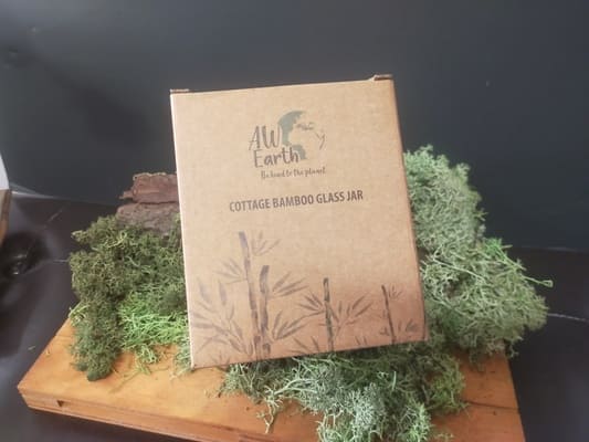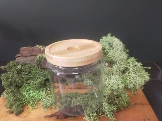 Tarro de Cristal y Bamboo. Diseñada para almacenar alimentos y demás productos de una manera practica y ecológica.